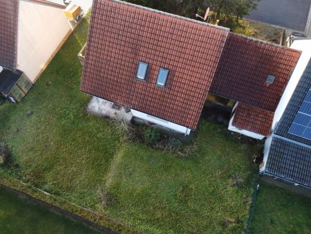 Das ca. 550 m² große Grundstück bietet viel Grünfläche, einen Geräteschuppen sowie eine eigene Garage. Die Lage in einer Sackgasse am Ortsrand sorgt für ein sehr ruhiges Umfeld.