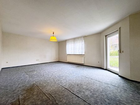 - der Innenbereich benötigt eine zeitgemäße Auffrischung. Teppichböden und Tapeten stammen noch aus dem Baujahr und zeigen entsprechende Gebrauchsspuren – alles Arbeiten, die sich mit überschaubarem Aufwand selbst durchführen lassen und dem Haus schnell einen modernen Charakter verleihen
