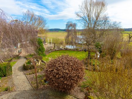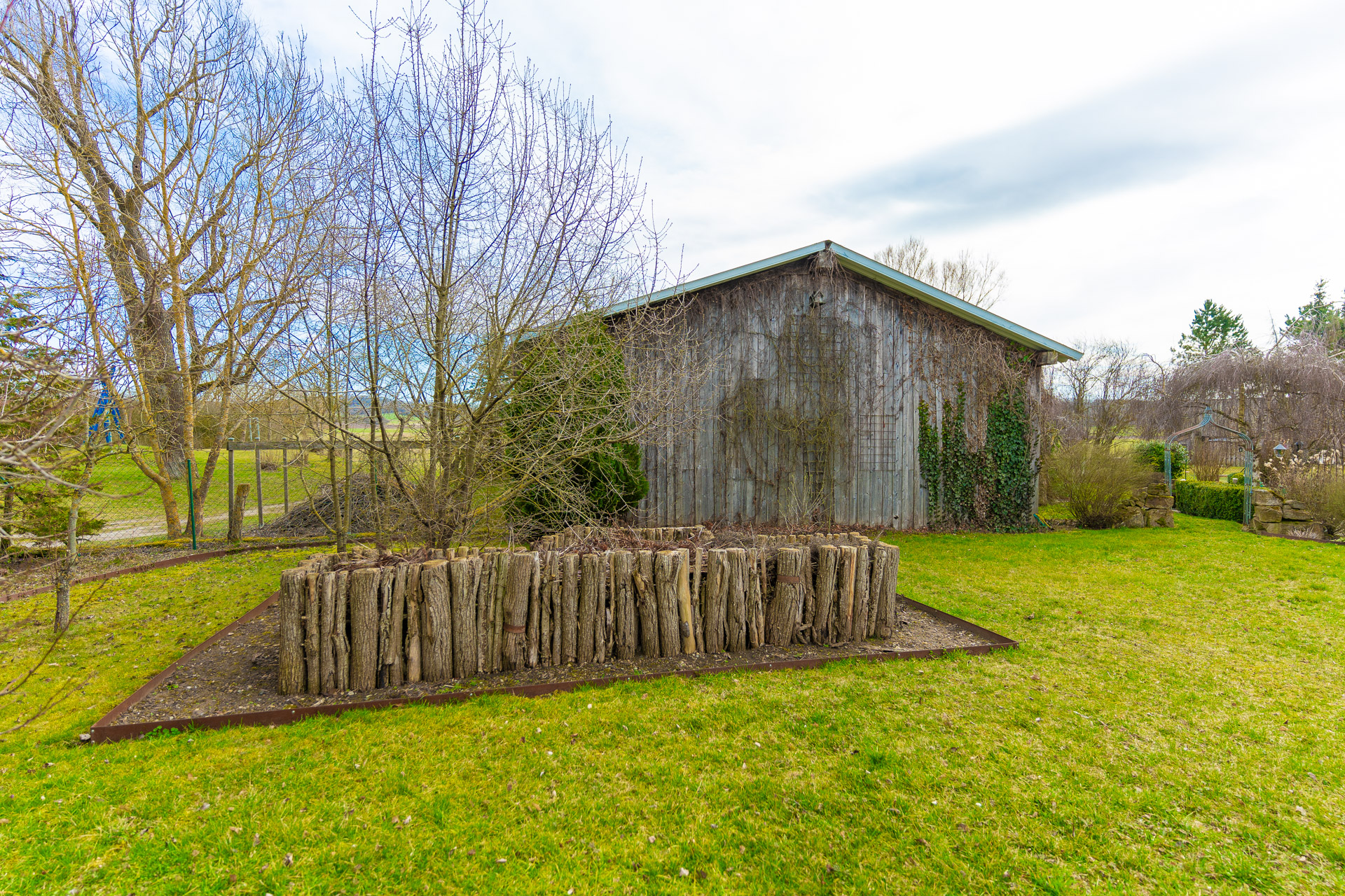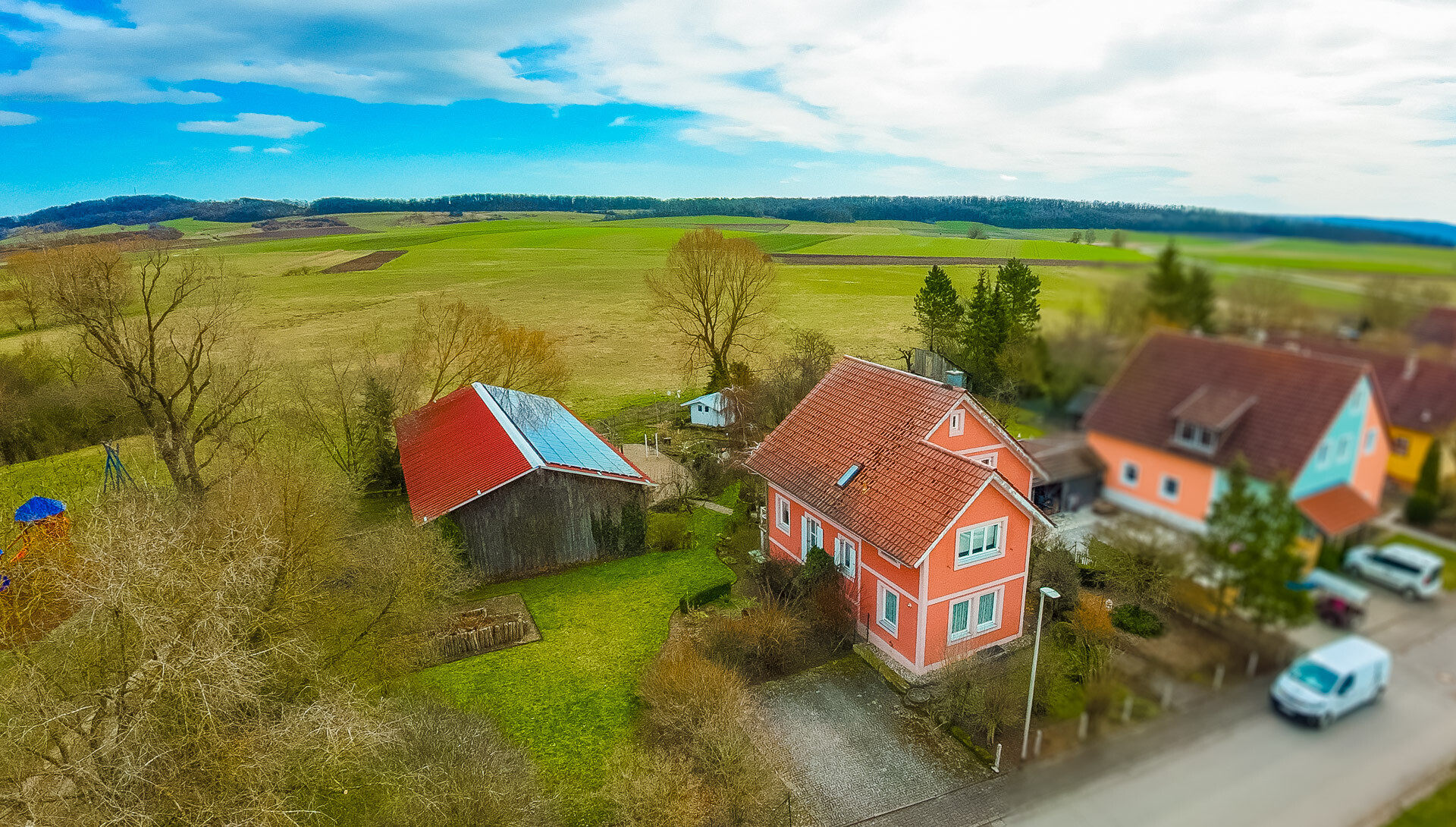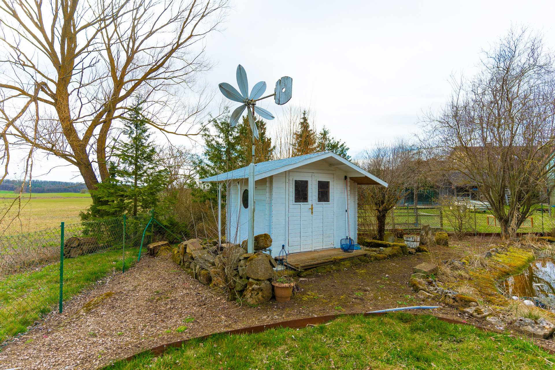 Hier erwartet Sie das Gefühl von Freiheit – In diesem schönen Einfamilienhaus mit idyllischem Gartengrundstück und einer separaten ca. 150 qm großen Halle mit PV Anlage. Die Halle hat ein elektrisches Rolltor und kann somit auch als Garage dienen. Auf einem 1587 m² großen Traumgrundstück am Ortsrand gelegen können Sie sich verwirklichen und Ihren Traum leben. Aufgeteilt auf zwei Wohnetagen bietet das vollunterkellerte Einfamilienhaus mit einer Wohn- und Nutzfläche von 160m² die perfekte Größe für eine kleine oder mittelgroße Familie. Liebevoll eingerichtet und geborgen fühlen Sie sich im Haus vom ersten Moment an wohl. Der wunderbar große Garten mit Gartenteich ist schön angelegt und lädt durch die Ortsrandlage und der damit verbundenen Weitsicht zu erholsamen Stunden im Grünen ein. Zwei PKW-Stellplätze im vorderen Bereich des Hauses sind außerdem im Angebot enthalten.