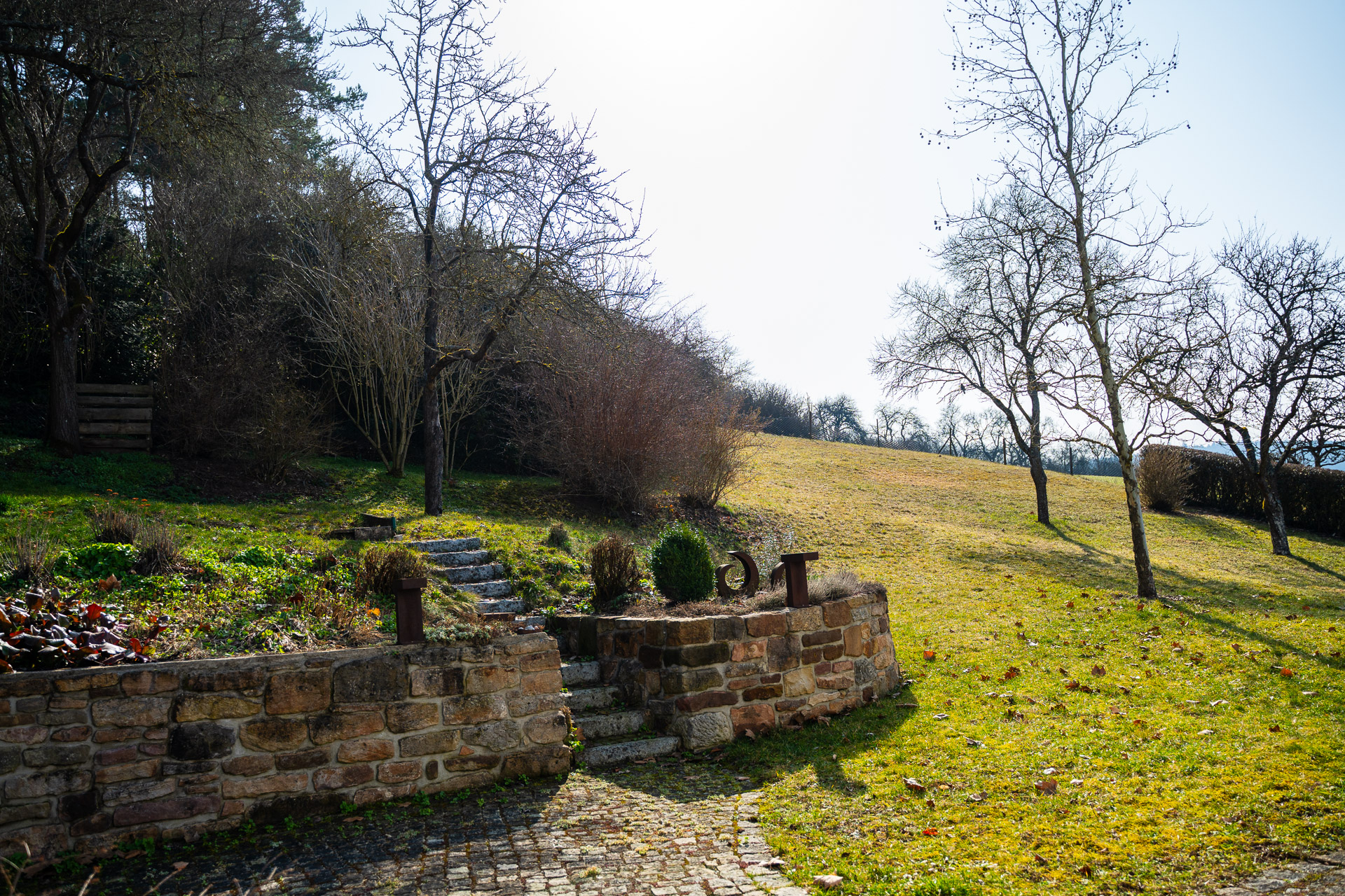 – Neue Natursteinmauer mit hochwertiger Gartenbeleuchtung
